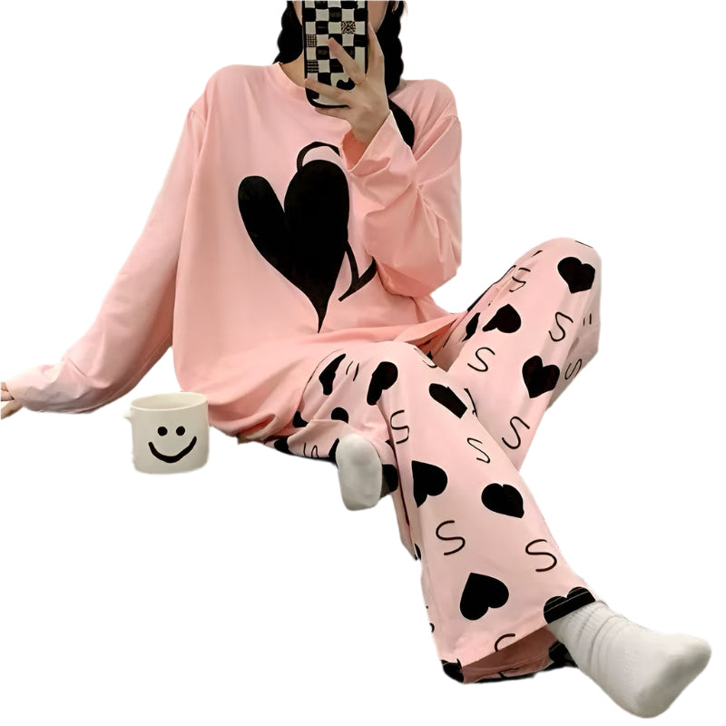 Black Heart On Pink Nightwear ( PJ'S Night Dress )