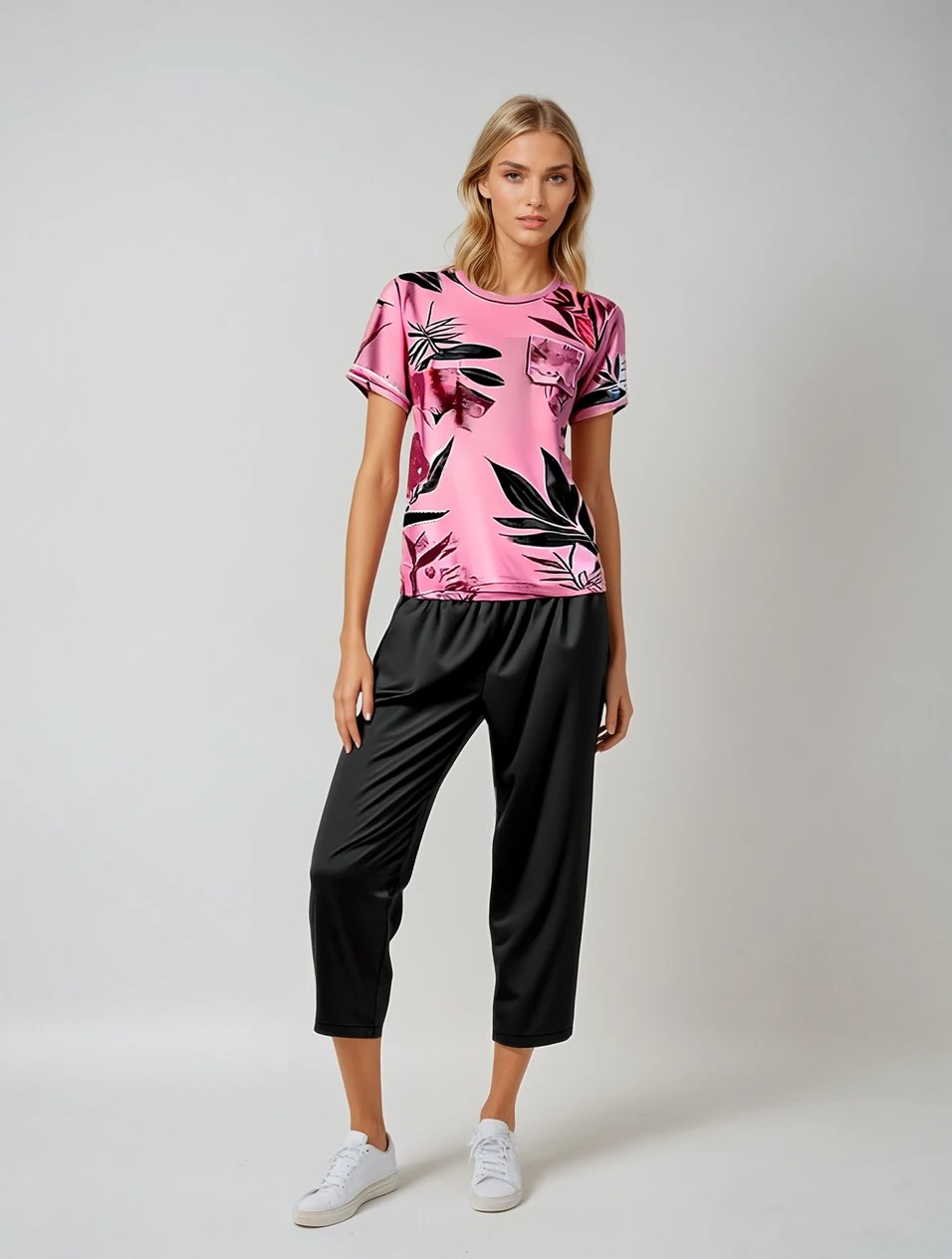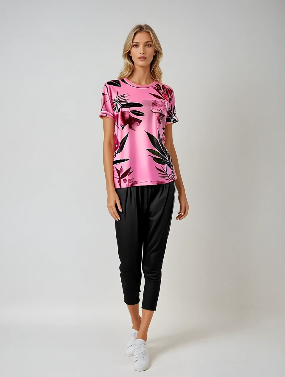 BLUSH LEAF PRINTED SHIRT AND BLACK TROUSER