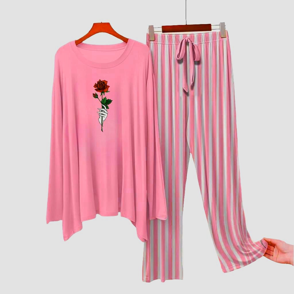 Pink Rose Flower Printed Shirt With Lining Trouser