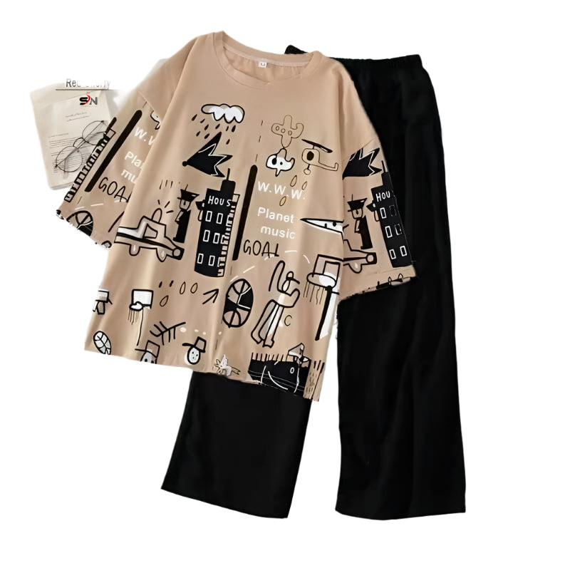 Brown Multicolor Painted Half sleeve ( PJ'S Night Dress )