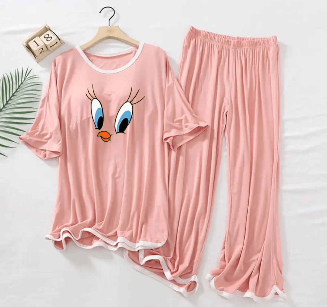 Peach Pink Daffy Duck Half Sleeves Plazzo PJ Set