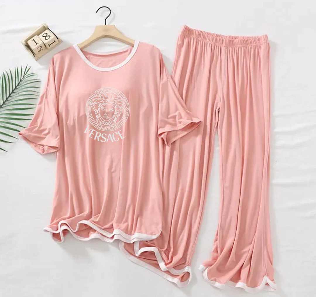 Peach Pink Vercase Half Sleeves Plazzo PJ Set
