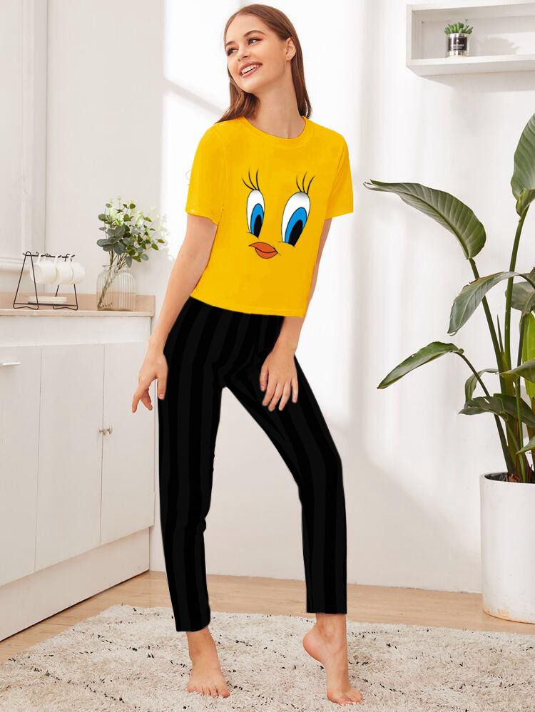 Yellow Daffy Duck Printed half shirt with Black Trouser Nightwear ( PJ'S Night Dress )
