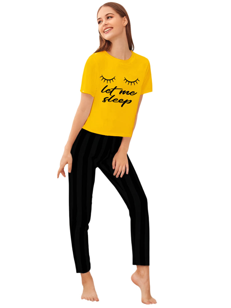 Yellow Let Me Sleep Printed half shirt with Black Trouser Nightwear ( PJ'S Night Dress )